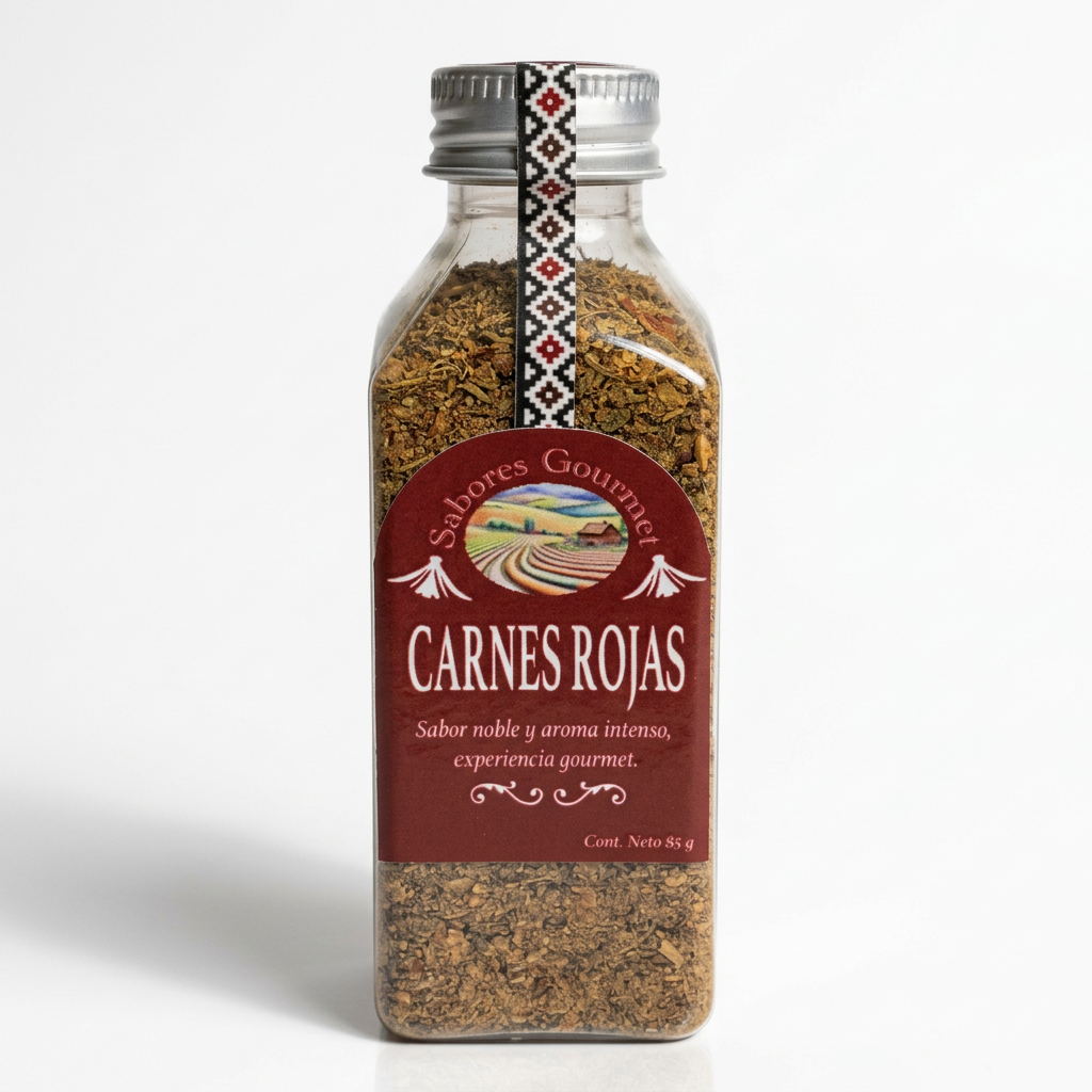 El condimento para carnes rojas es una mezcla de especias especialmente seleccionadas para realzar el sabor de cortes de carne vacuna y otras carnes intensas. Su combinación equilibrada aporta aroma, profundidad y un toque especiado que potencia el sabor natural de la carne.