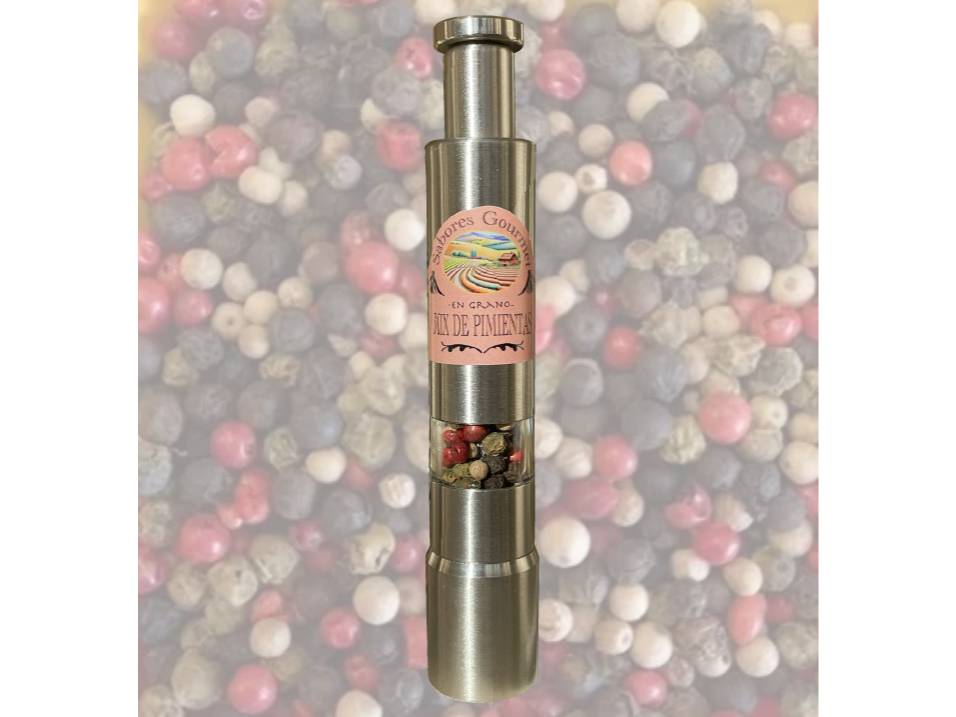 Pimientero de Acero Inoxidable Recargable – Mix de Pimientas Negra, Blanca, Verde, Rosa en Grano