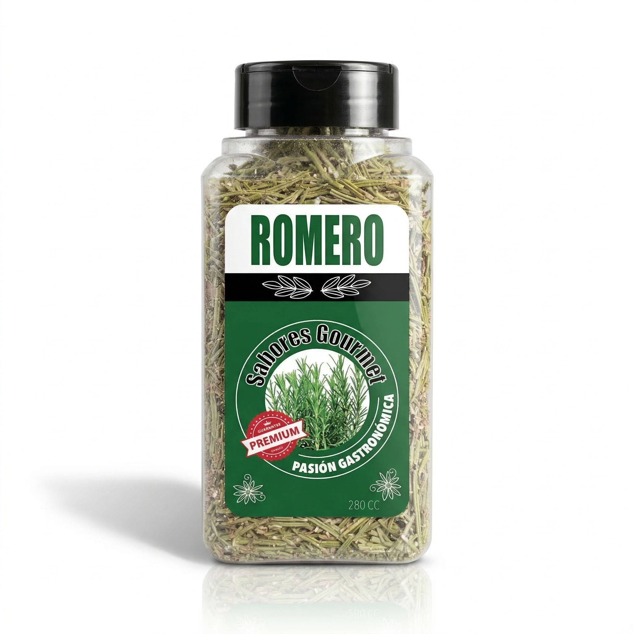 El romero es una hierba aromática de sabor fuerte y característico, muy utilizada en la cocina mediterránea. Sus hojas liberan lentamente su aroma durante la cocción, aportando un toque fresco, herbal y ligeramente resinoso que realza carnes, vegetales y salsas.